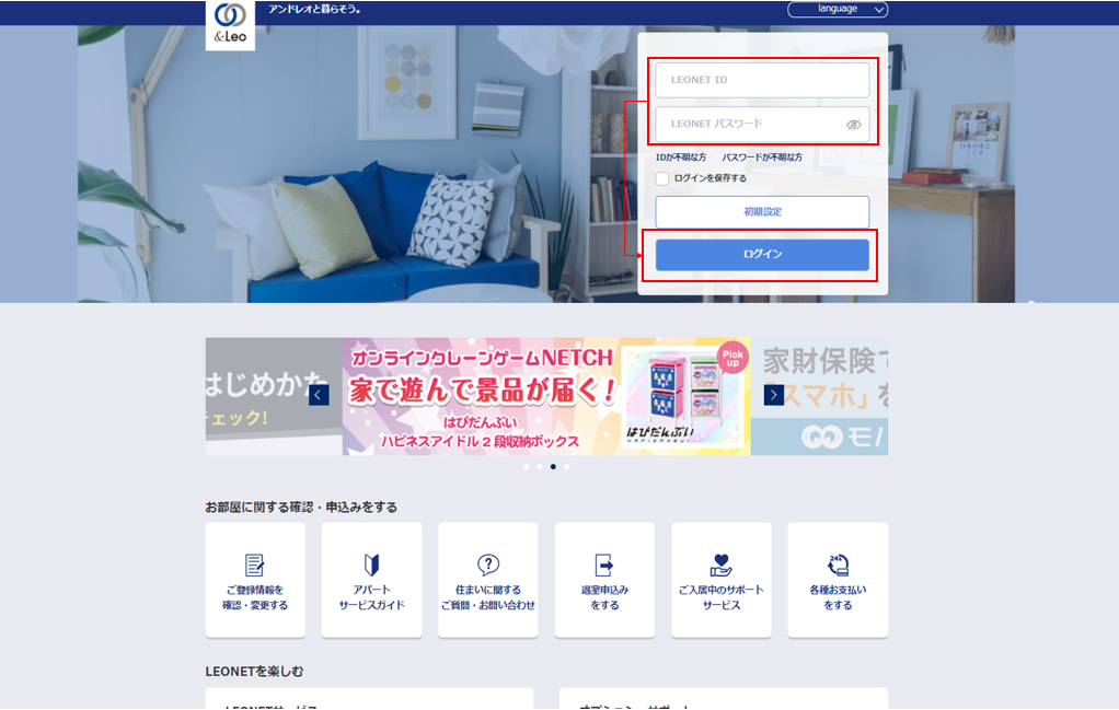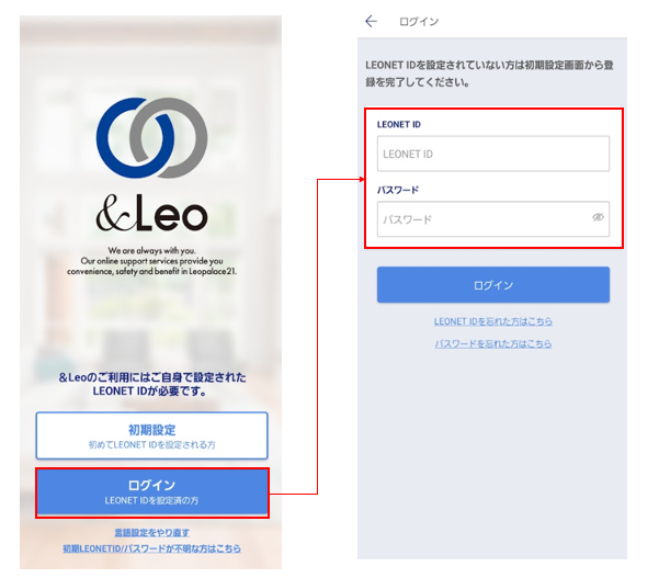 LEONET(レオネット)サービスを初めてご利用される時は、下記のいずれかの方法で初期設定が必要になります。
