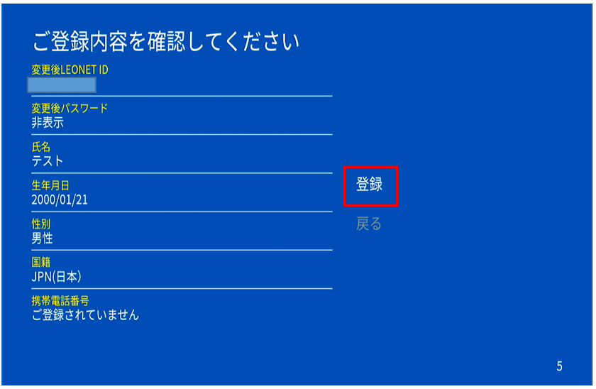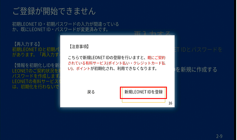 上記の場合、テレビ画面上で新規IDとパスワードを作成いただく必要があります。