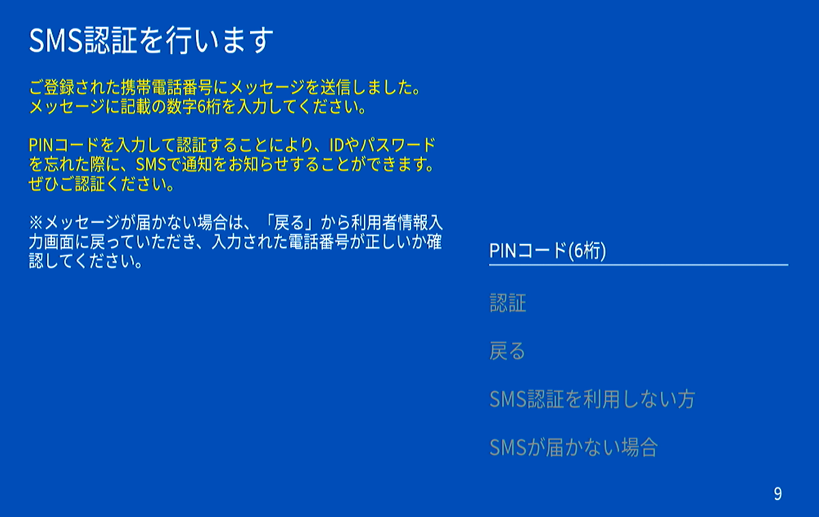15)13)で電話番号を登録している場合、登録した電話番号宛てにPINコードが届きますので届いたコードを入力してください。