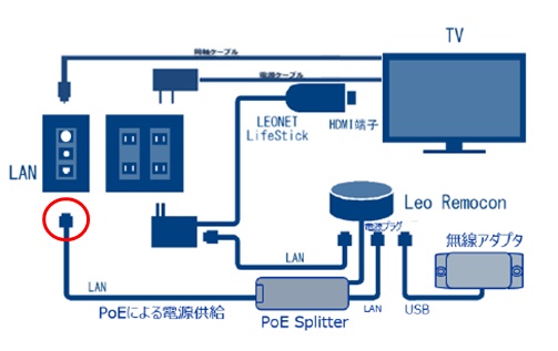 〈LeoRemocon(レオリモコン)のみが設置されている場合の配線図と再起動方法〉