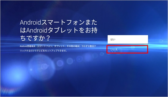 2)「AndroidスマートフォンまたはAndroidタブレットをお持ちですか?」という画面が表示されますが、こちらでの設定は行わない為、「いいえ」を選択します。