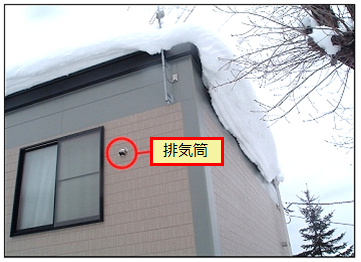 排気筒は、窓の外側上部についていますので、棒状のもので軽く叩き雪を払っていただくと改善される場合があります。