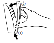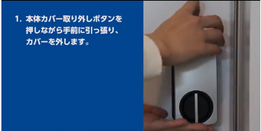 1)本体カバー 上部のボタンを押しながら手前に引っ張り、カバーを外します。