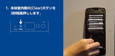 1)本体室内側の「Clear」ボタンを3秒間長押しします。