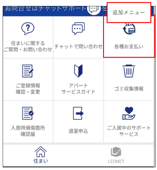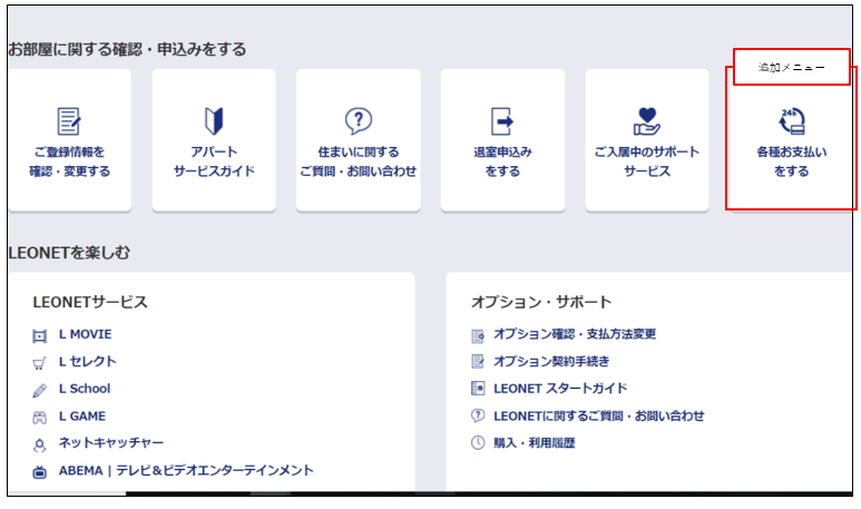 &Leoアプリ・&LeoWEB上において、個人契約者の方を対象に「利用料・更新手数料・年会費・年間保証委託料」の入金をWEBで決済を行うことが可能です。