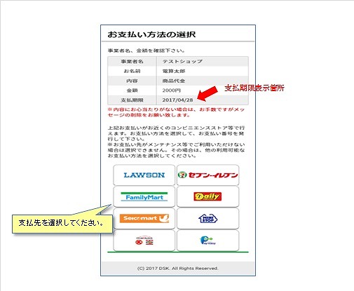 SMSに記載されているURLリンクから本人認証(生年月日)の上、希望するコンビニを選択することで支払いが可能となります。