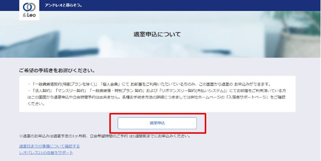法人(会社)で契約しているお客様、月払いシステム契約、定期借家契約のお客様は申し込みができませんので、あらかじめご了承ください。