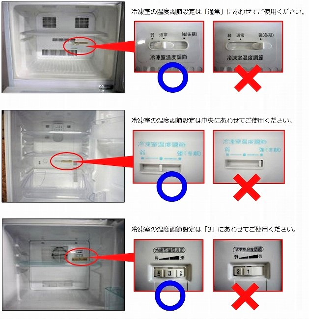 3)冷蔵庫内に温度調節つまみがある場合は、つまみが「切」になっていないか確認します。