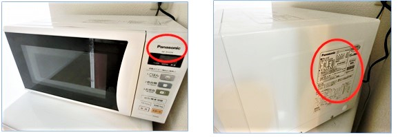 電子レンジの型番は、主に側面に貼ってあるシールに「EM」「MJ」「RE」「NE」「TSI」「HR」「DM」「DR」「MM」といったアルファベット2~3文字から始まる番号で記載されています。