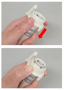 4)給水ホースのロックレバー(爪)を指で引き、押さえます。