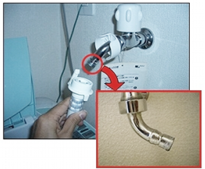 1)給水ホースから水栓アダプターを取り外します。