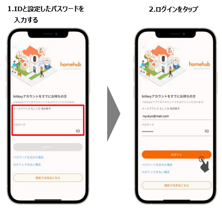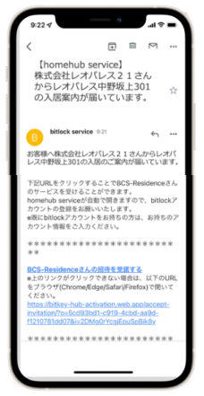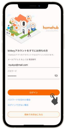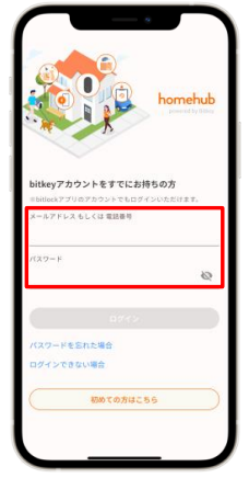 1)アカウント登録がお済みの場合は、入居日当日にhomehub(ホームハブ)アプリに鍵が届きます。