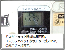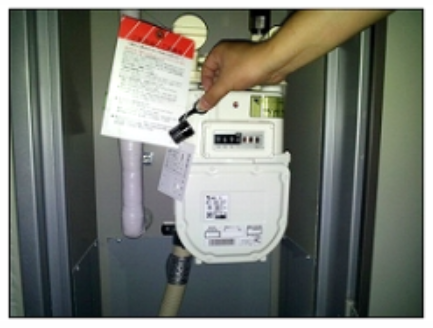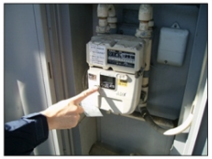 1)ガス機器の使用を止めます(お湯を止める、ガスコンロの使用を止める)。