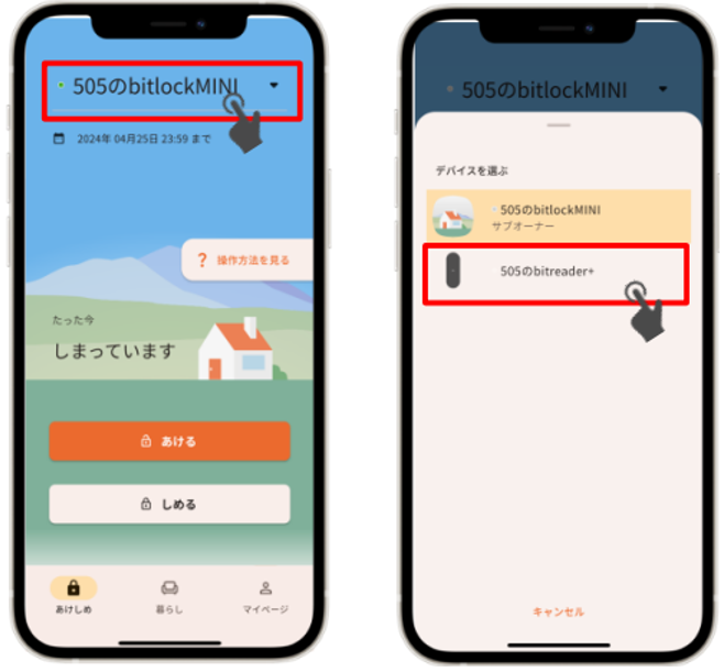 デバイスを選択する画面が表示されますので「reader+」を選択します。