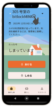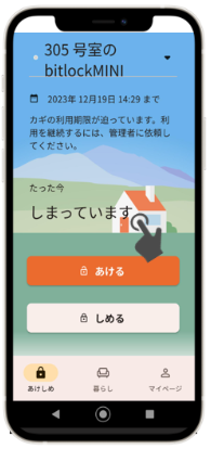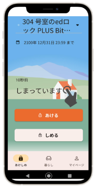1)homehubアプリを起動し、「あけしめ」タブを選択します。