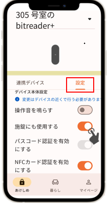 4)「設定」タブの「施錠にも使用する」をONにします。