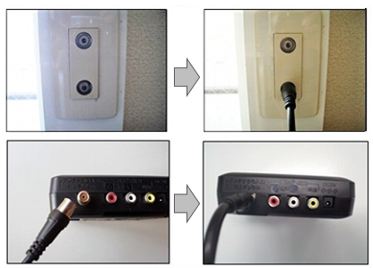 地上デジタルチューナーとブラウン管テレビの接続方法については、以下の動画または接続手順1)~4)をご確認ください。