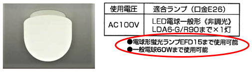 ※以下の画像は一例です。照明器具本体もしくはカバーに適合ランプに関する記載があります。